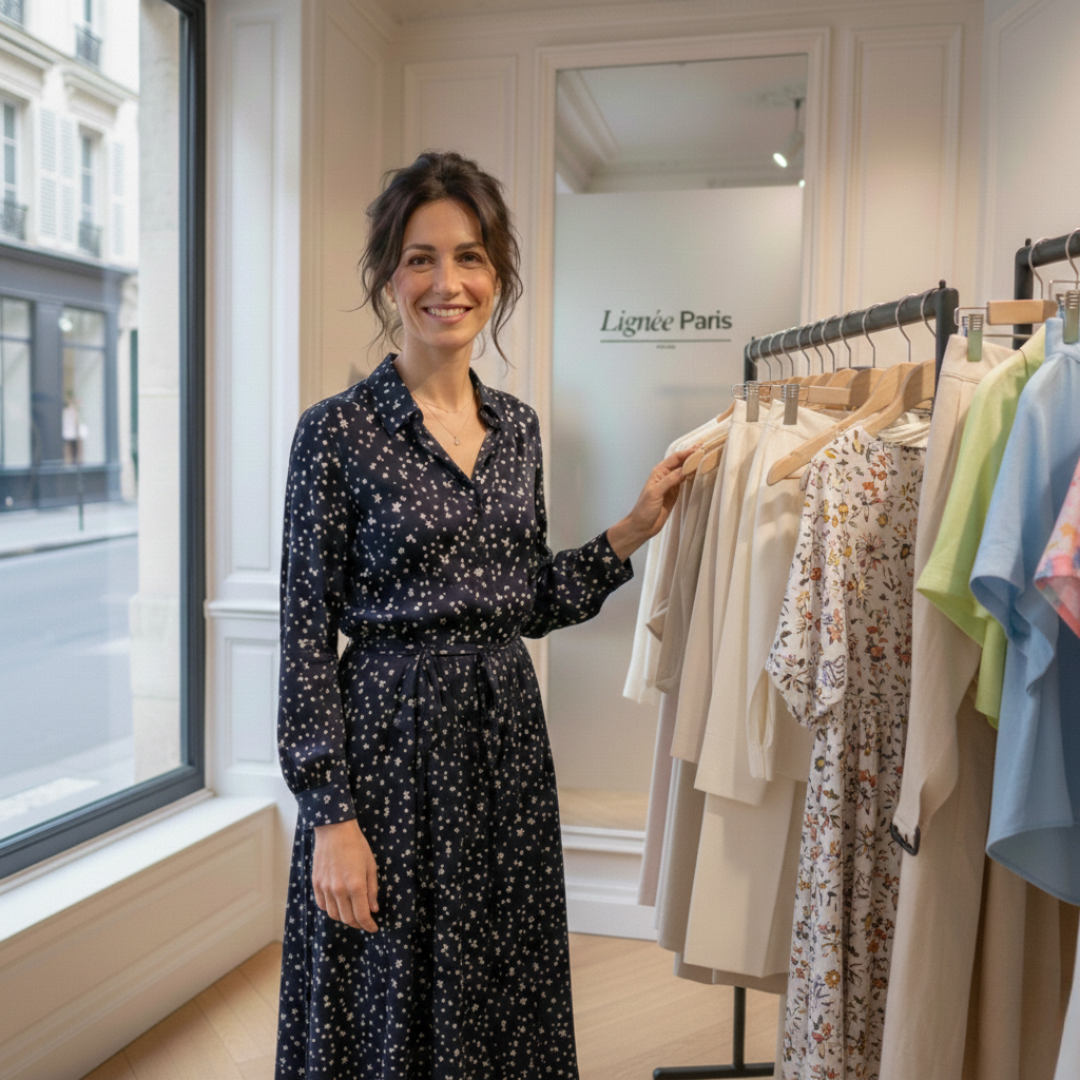 Rencontrez Léa. Animée par une conviction profonde, elle fonde Lignée Paris. La mode traverse toute sa vie : une formation en fashion et management de la mode, une expérience au sein de maisons parisiennes, puis une décision claire créer son propre univers. Après plusieurs années dans le secteur, elle lance Lignée Paris il y a dix ans avec une vision assumée : faire les choses autrement. Aujourd’hui, Léa avance avec une approche personnelle, reste au plus proche de ses clientes, anticipe les nouvelles tendances et développe chaque projet avec exigence et attention. Son moteur reste intact: écouter, comprendre et satisfaire, pour que chaque cliente se sente vraiment considérée.